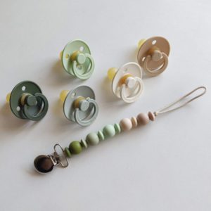 Подарунковий набір пустушки та тримач для соски BIBS Colour Pacifier & Loop Clip Gift Set Latex – Sage