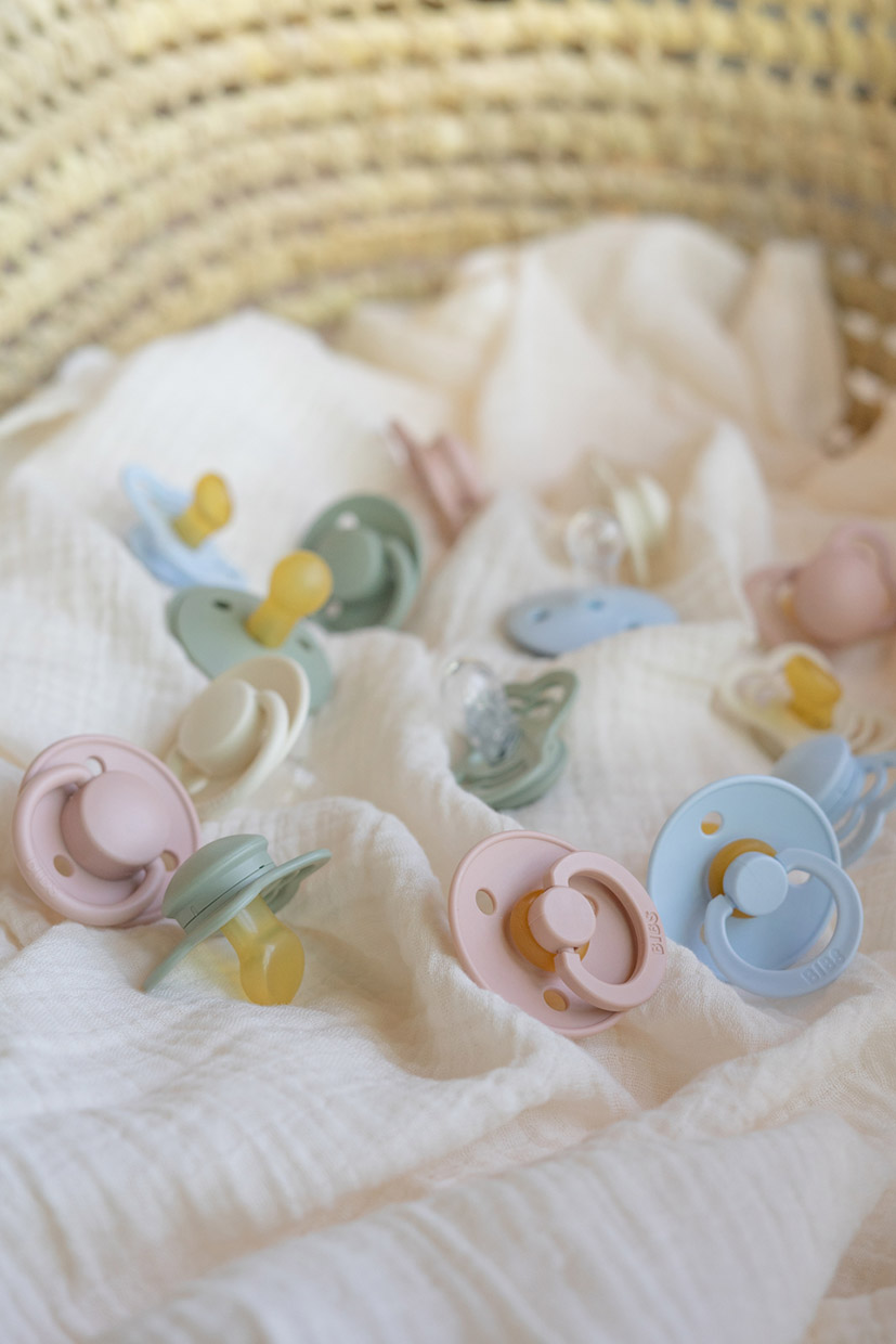 Ось чому BIBS запустили колекцію BIBS Try-it Colour. У колекції ви знайдете 3 пустушки колекції Colour з різними типами сосочків (круглі, симетричні та анатомічні) з натурального каучука.